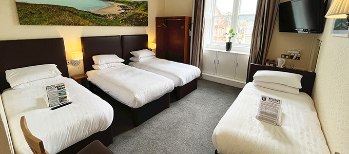 Our Quad rooms provide a cost effective way for friends or family to travel. Each room has 4 single beds with ample room for everyone. The rooms have all the mod cons expected and have en-suite bath’n’shower facilities.
